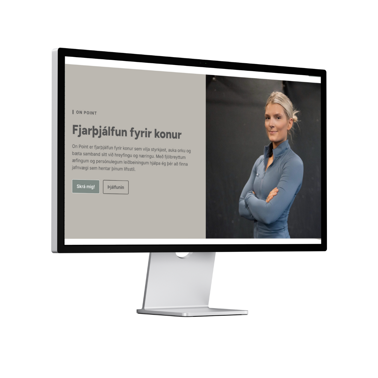 Fyrir On Point hönnuðum við stílhreina og fallega vefsíðu sem endurspeglar fagmennsku vörumerkisins. Vefurinn var settur upp með skráningarformi sem gerir væntanlegum viðskiptavinum auðvelt að skrá sig og hefja samstarf með fjarþjálfara.
