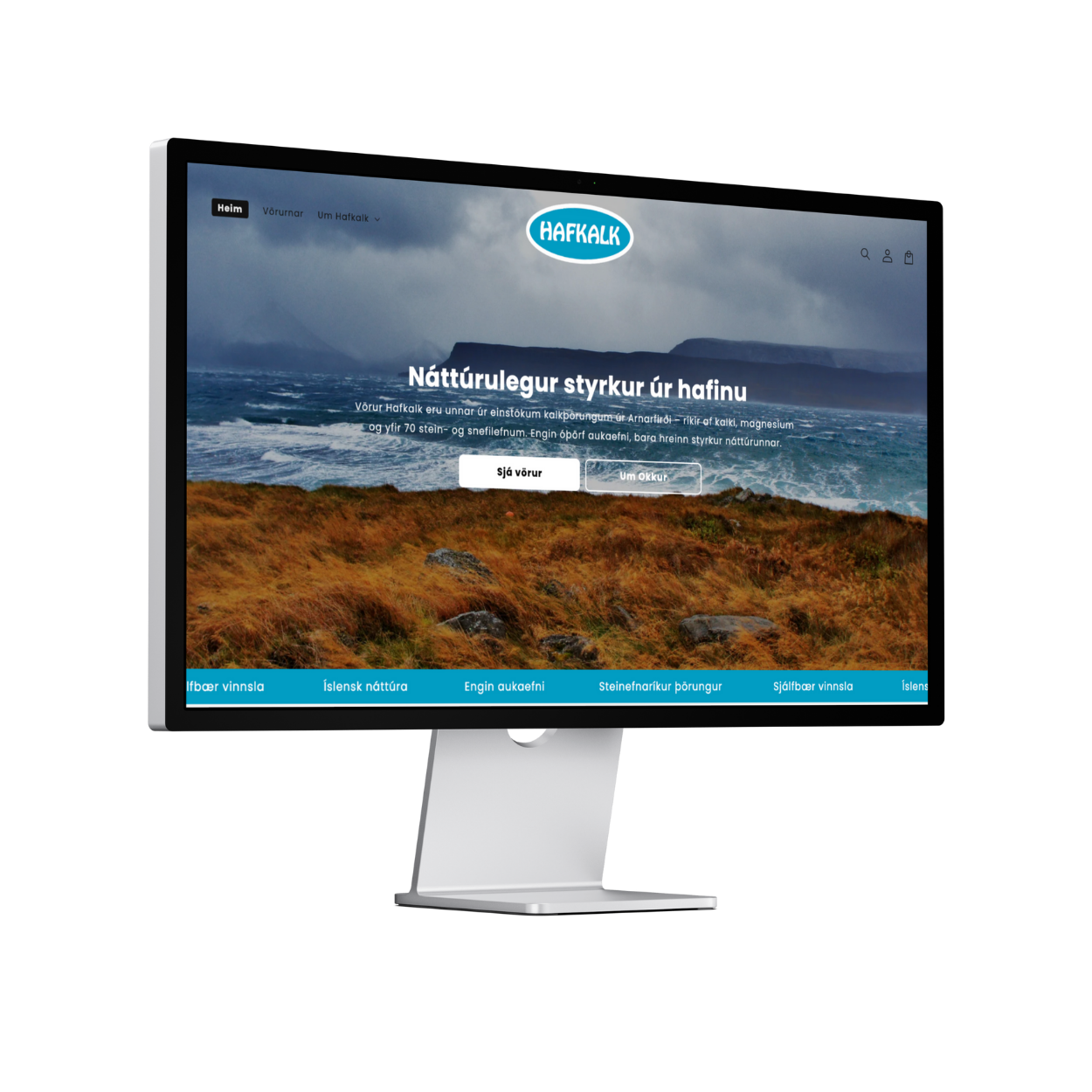 Við tókum að okkur að endurhanna vefverslunina Hafkalk.is með skýra áherslu á söluaukningu og notendavænni upplifun. Ný heimasíða var sett upp með hreinu útliti, skýrum vörulýsingum og trúverðugleika vörumerkisins í fyrirrúmi. Lagt var upp með söludrifna uppbyggingu þar sem viðskiptavinurinn fer auðveldlega frá upplýsingum yfir í kaup, með sterkar CTA-leiðir og einfaldara kaupferli. Þar að auki settum við upp sjálfvirk póstlista sölukerfi og árangursdrifnar Meta auglýsingar sem styðja við sölu og auka sýnileika vörumerkisins.