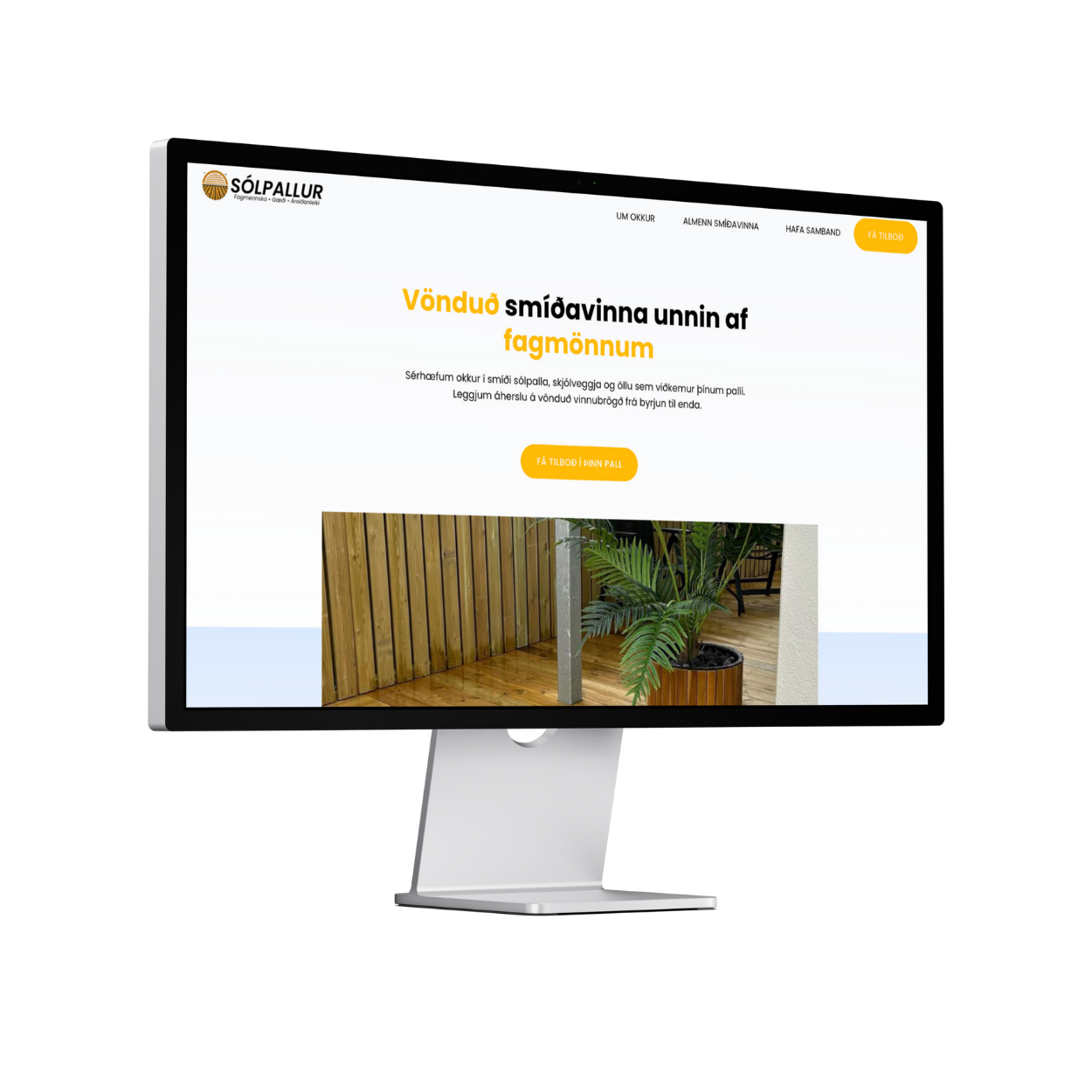 Solpallur.is þurfti einfalda en stílhreina vefsíðu til að sýna fyrri smíðaverkefnin sín á faglegan hátt. Við settum einnig upp verkbeiðnaform sem gerir viðskiptavinum auðvelt að senda inn fyrirspurnir og óska eftir tilboðum.